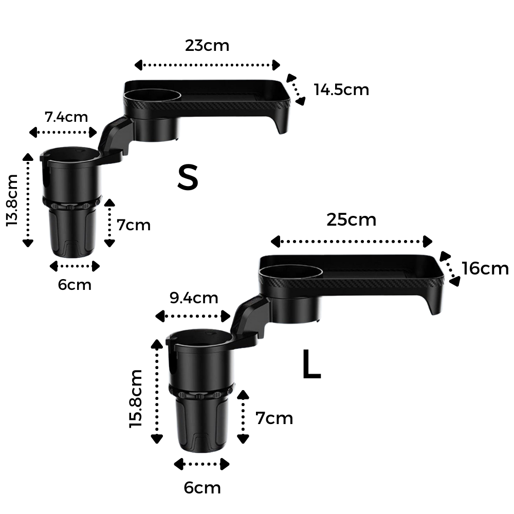 Car Cup Holder and Rotating Tray - Dimensions -