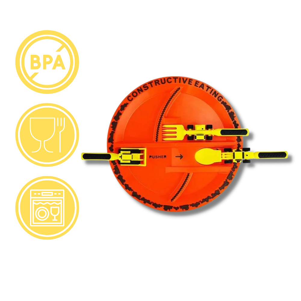 Creative Constructive Eating Plate and Utensils Set   - Empowering Young Minds with Realistic Designs - Ozerty