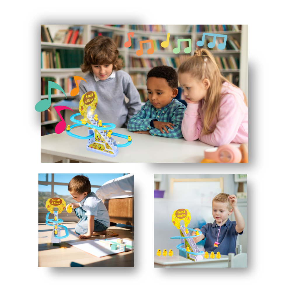In today's fast-paced world, capturing and maintaining a child's attention can be challenging. The Electric Duck Slide Track addresses this by offering a visually captivating experience that draws children in and keeps them engaged. With its vibrant colors and dynamic movements, this toy stands out in a sea of distractions. The ducks' journey up the stairs and down the slide, paired with flashing LED lights, not only adds a magical touch to playtime but also serves a critical role in sustaining focus. This engaging design ensures that children are not only entertained but also immersed in an interactive learning environment, where visual stimulation supports both play and developmental growth.