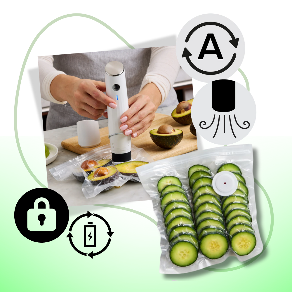 Preserve freshness 5x longer with the Fresh Lock Vacuum Sealer. Fast, portable, reusable bags, and smart tech make food storage easy, eco-friendly, and efficient!