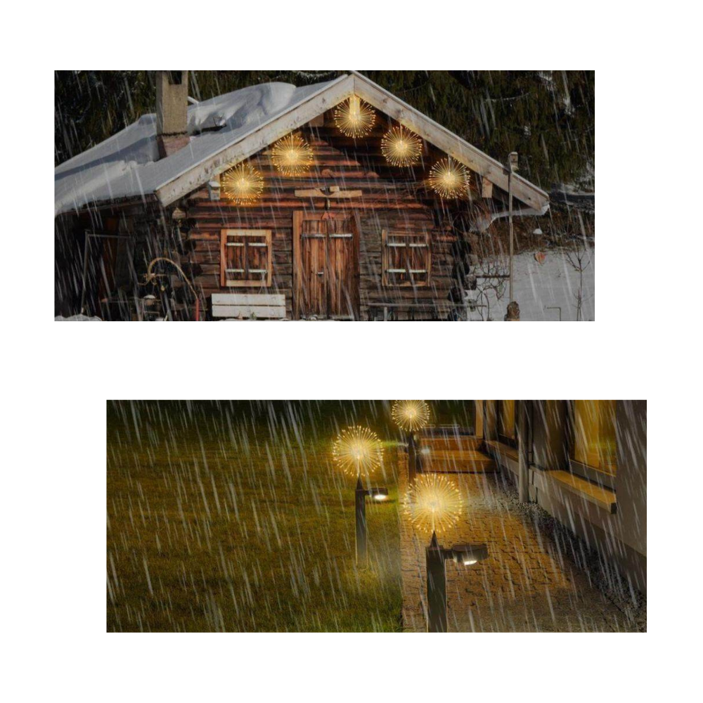 These firework LEDs are fully waterproof and resistant to weather conditions such as rain, snow, wind, cold, and heat. Don't worry about having to pack up all the lights if the weather changes.
