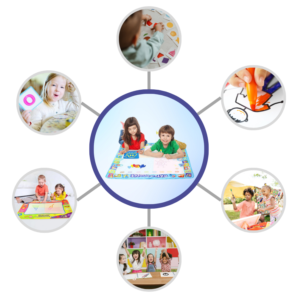 Safety is paramount when it comes to children's toys, and the Stimulating Water Doodle Mat is designed with this in mind. The mat is made from non-toxic, BPA-free materials, ensuring that it's safe for children to use. Its water-based drawing system eliminates the risks associated with ingestible small parts or harmful chemicals. The edges of the mat are smooth and soft, reducing the risk of cuts or scrapes. By prioritizing safety, the Water Doodle Mat provides parents with peace of mind while offering a fun and educational toy for their children.